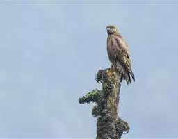 白肩雕:又名御雕,是大型猛禽。体长73-84厘米。体羽黑褐色,头和颈较淡,肩部有明显的白斑,在黑褐…