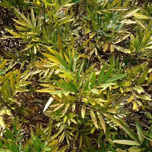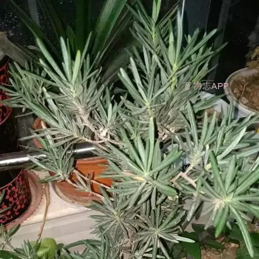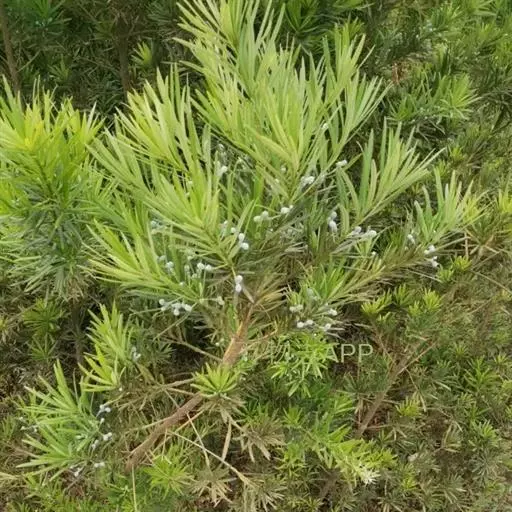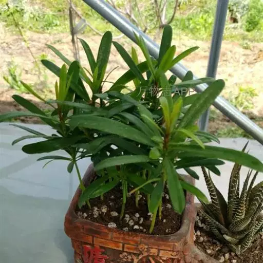 叶螺旋状着生,条状披针形,微弯,长7-12cm,宽7-10mm,先端尖,基部楔形,上面深绿色,有光泽,中脉显著隆起,下面带白色、灰绿色或淡绿色,中脉微隆起。
