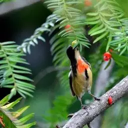 红胸啄花鸟:体重5-10克,体长60-92毫米。体形纤小。雄鸟上体呈辉亮的金属绿色;下体棕黄,…