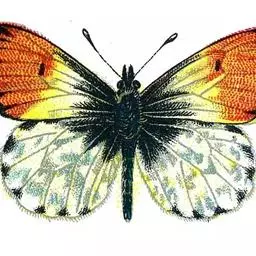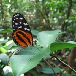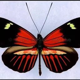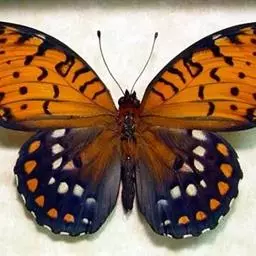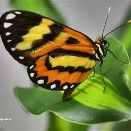 黑脉金斑蝶:翅阔8.6-12.4厘米。雄蝶较雌蝶为大。成年蝶颜色鲜艳,翅膀上有显眼的橙色及黑色斑纹…