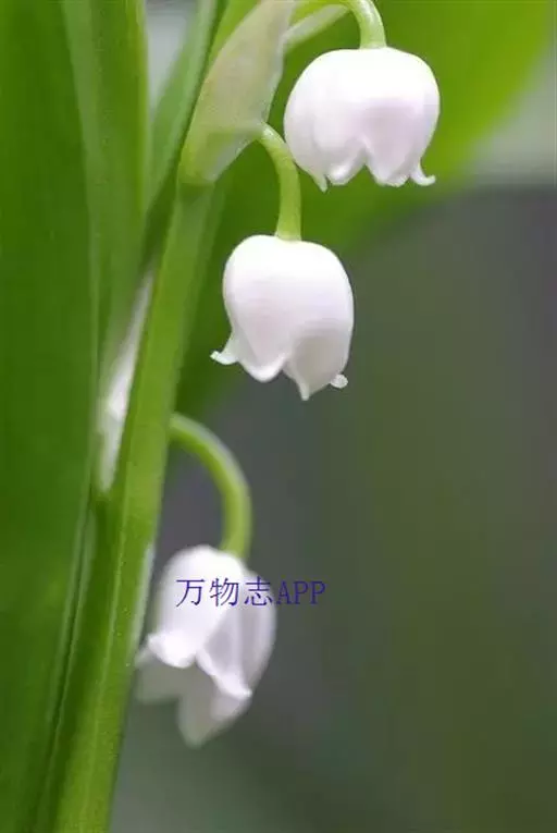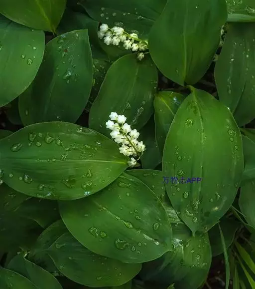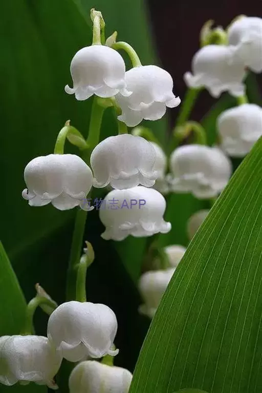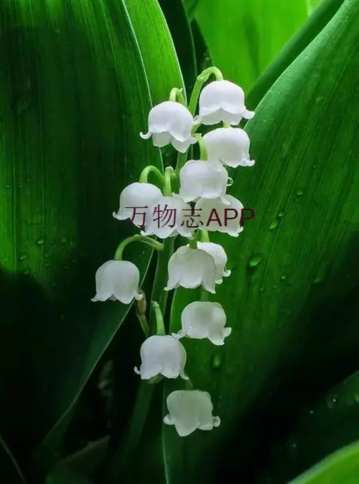 铃兰是多年生草本植物,植株全部无毛,高18-30厘米,常成片生长。叶椭圆形或卵状披针形,长7-20厘米,宽3-8.5厘米,先端近急尖,基部楔形;叶柄长8-20厘米。