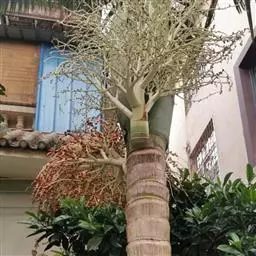 霸王棕是棕榈科霸王棕属常绿乔木,高可达20~30米。基部膨大,叶基宿存。叶片扇形,掌状分裂,…