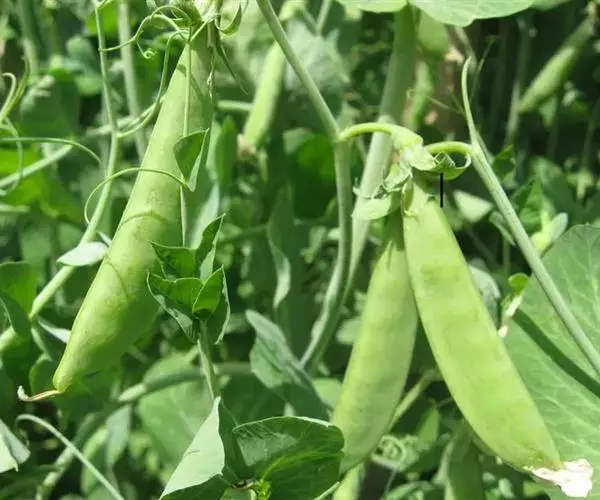 豌豆(学名:Pisum sativum L.)豆科一年生攀援草本,高0.5-2米。全株绿色,光滑无毛,被粉霜。叶具小叶4-6片,托叶心形,下缘具细牙齿。小叶卵圆形;花于叶腋单生或数朵排列为总状花序;花萼钟状,裂片披针形;花冠颜色多样,随品种而异,但多为白色和紫色。子房无毛,花柱扁。荚果肿胀,长椭圆形;种子圆形,青绿色,干后变为黄色。花期6-7月,果期7-9月。