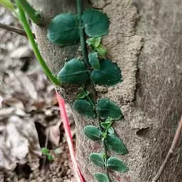 蔓九节,别名:拎壁龙、风不动藤(台湾植物志),穿根藤(潮州志),娱蚣藤(海南檐县),崧筋藤、上树龙。是茜草目茜草科九节属植物。攀缘藤本,长达5米或更长,全株无毛;嫩枝稍扁,有细直纹,老枝柱状,近木 质,攀附枝有一列短而密的气根。叶对生,厚纸质,椭圆形至卵形,或倒卵形至 倒披针形,长2—6厘米,游离枝上的较大,通常钝头,边反卷,侧脉稀疏,约4— 6对,不很明显;托叶披针形,很快脱落。