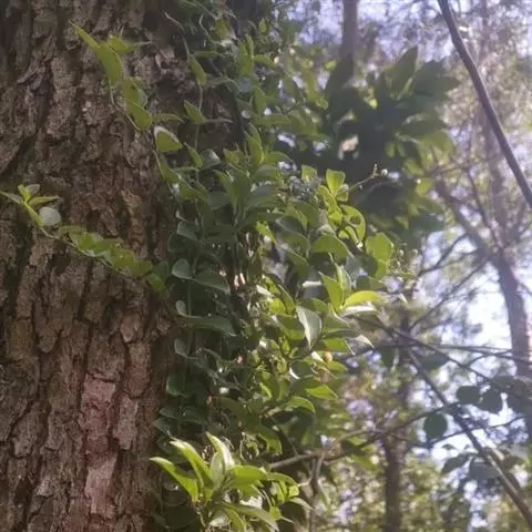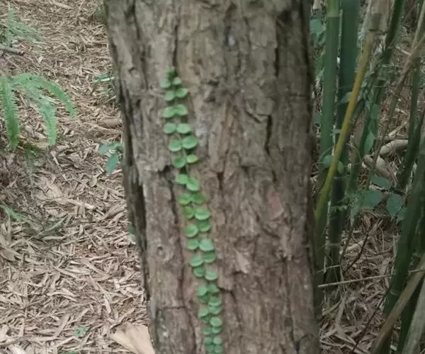 蔓九节是茜草科九节属的攀援或匍匐藤本植物。常以气根攀附树干或岩石;幼枝无毛或有粃糠状柔毛;幼树叶卵形或倒卵形,托叶膜质;圆锥状或伞房状聚伞花序顶生,苞片和小苞片线状披针形,花萼倒圆锥形,花冠白色,冠筒与裂片近等长,裂片长圆形;浆果状核果球形或椭圆形;花期4-6月;果期全年。因叶片紧贴着树干往上生长,宛如一条青龙上树,故又名“上树龙”。蔓九节分布在中国浙江、福建、台湾等省地,在日本、朝鲜、越南等国也有分布,生长在海拔70-1360米的平地、丘陵、山地、山谷水旁的灌丛或林中。喜温暖湿润,不耐寒,耐荫,适宜选用排水良好、富含有机质的砂质土壤。蔓九节在《世界自然保护联盟濒危物种红色名录》中属于无危。繁殖方法一般为扦插、压条、播种繁殖。据《福建药物志》中记载蔓九节“有祛风除湿,舒筋活络的功效。主治风湿关节痛,头风痛,手足麻木坐骨神经痛,腰肌劳损,