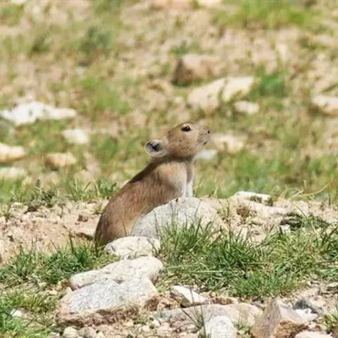 高原鼠兔 主要栖居于海拔3100-5100米的高寒草甸、高寒草原地区,喜欢选择滩地、河岸、山麓缓坡等植被低矮的开阔环境,回避灌丛及植被郁闭度高的环境。