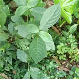 一年生直立草本,高20-60厘米,茎粗壮,有分枝,枝略成四棱形,有灰色糙毛,幼时更密,节部稍膨大。叶片纸质,长椭圆形或矩圆状倒卵形,长3.5-13厘米,宽1.5-5厘米,顶端急尖或圆钝,凸尖,基部渐狭,边缘波状,两面有小斑点、白色长柔毛及缘毛,叶柄长1-1.5厘米,有灰色长柔毛。