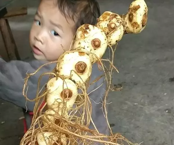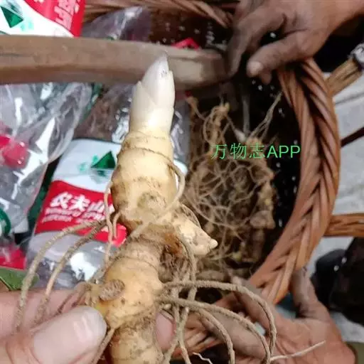 3、滇黄精:根茎肥厚,姜快状或连珠状,直往2~4cm或以上,每一结节有明显茎痕,圆盘状,稍凹陷,宜往5~8mm;须根痕多,常突出,宜径约2mm。表面黄白色至黄棕色,有明显环节及不规则纵皱。质实,较柔韧,不易折断,断面黄白色,平坦,颗粒状,有众多深色维管束小点。气微,味甜,有粘性。
