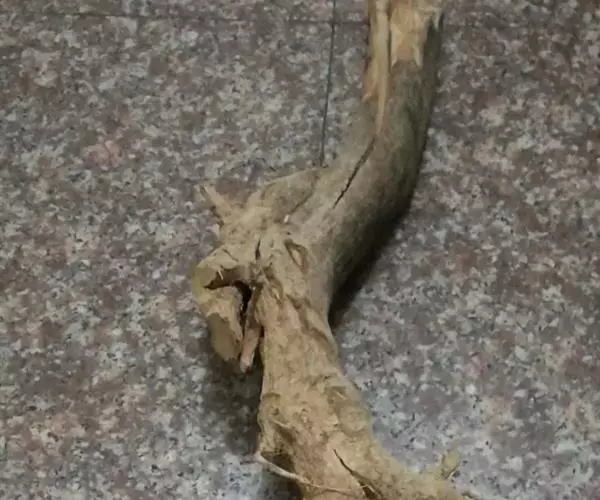 2、多花黄精:根茎连珠状或块状,稍带圆柱形,直径2~3cm。每一结节上茎痕明显,圆盘状,直径约1cm。圆柱形处环节明显,有众多须根痕,直径约1mm。表面黄棕色,有细皱纹。质坚实,稍带柔韧,折断面颗粒状,有众多黄棕色维管束小点散列。气微,味微甜。