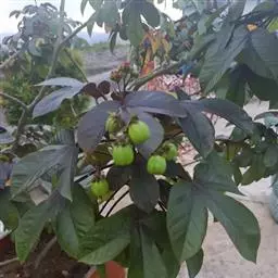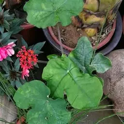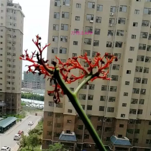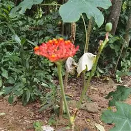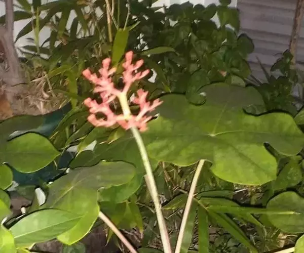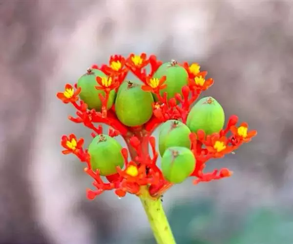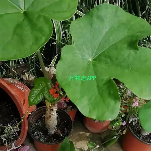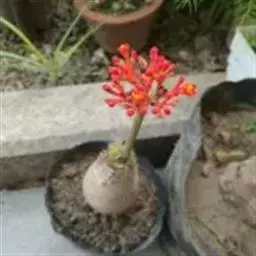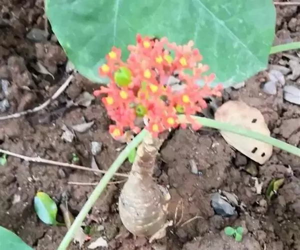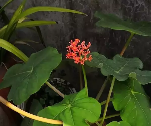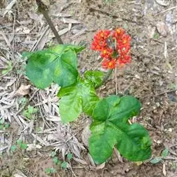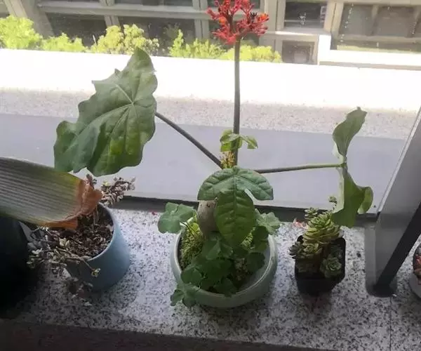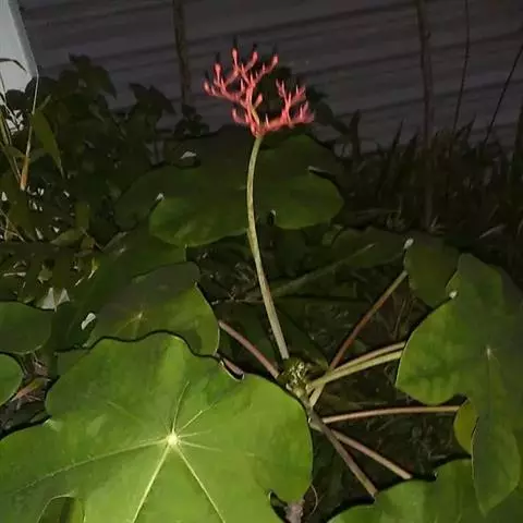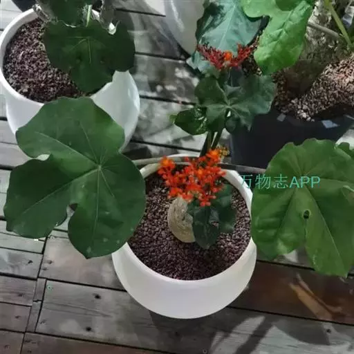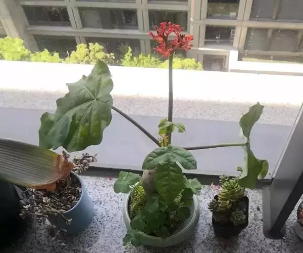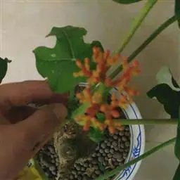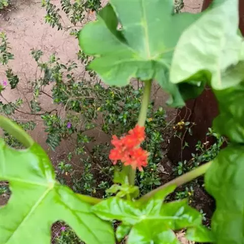 佛肚树(学名:Jatropha podagrica Hook.)是大戟科麻疯树属的肉质灌木,茎基部膨大呈卵圆状棒形,茎端两歧分叉。茎表皮灰色易脱落。叶簇生分枝顶端,绿色,光滑又稍具蜡质白粉。托叶角质分叉,刺状,宿存于茎枝上很长时间。花序长15厘米,重复两歧分叉,花鲜红色。