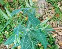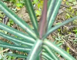 ⑵采用劈接法嫁接,以成活的高大膏桐为砧木,根据希望嫁接的位置、茎粗大小来选择接穗,选好砧木和接穗后,在适当的位置截干,沿中线纵劈开至恰当的深度,把接穗球茎下的主根削成契形,长为9-11 厘米,插入劈开的砧木,将形成层对齐,插紧;