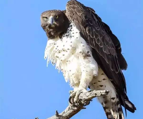 猛雕是一种非常大的雕。总长度范围为78至96厘米(31至38英寸),平均约为85.5厘米(33.7英寸) 。与翼展相比,它的总长度受到相对较短的尾翼的限制。然而,它似乎仍是第六或第七个体长最长的现存雕类。猛雕的翼展在188到260厘米(6英尺2英寸到8英尺6英寸)之间。据称,该物种的平均翼展分别为205厘米(6英尺9英寸)和207.5厘米(6英尺10英寸),但野外测得的10只猛雕的翼展平均为211.9厘米(6英尺11英寸)。因此,在活雕中,猛雕的翼展平均排名第四,仅次于短尾海雕(远洋海雕)、白尾海雕(白尾海雕)和楔尾雕(奥达克斯海雕)。对于一个种内基因差异相当均匀的物种来说,猛雕的体重有着惊人的差异性。在某种程度上,该物种身体质量的变化可归因于相当大的反向性二形性以及各种雕种群的不同环境条件。在一次研究中,未区分性别的17只猛雕平均重量为3.93千克(8.7磅),20只鸟3.97千克(8.8磅),20只鸟4.23千克(9.3磅),而20世纪初南非狩猎管理员射杀的猛雕平均重量为4.71千克(10.4磅)。在重量范围内,猛雕的大小与金雕(金雕)和黑雕(甚至在已知的最大体重上超过了金雕)相当接近。根据大量的研究,猛雕的平均重量似乎比黑雕稍重,但(源自不同种族的全球综合体重),金雕和猛雕的平均体重都在4.17公斤(9.2磅)左右。这使金雕和猛雕成为非洲最大的雕(按体重计,不包括体长或翼展),以及世界上最重的两种靴足雕和世界上体积第六大雕,仅次于三大海雕(虎头海雕是现存最大的雕,其余两种则是第四和第五名),角雕(Harpia Harpyja)和菲律宾食猿雕(Pithecophaga Jefferyi)。非洲最长的雕(也是继楔尾雕(Aquila Audax)之后第二长的靴足雕)是冕雕,因为它的尾巴相对较长,而它的体重略小于三种最重的靴足雕 。