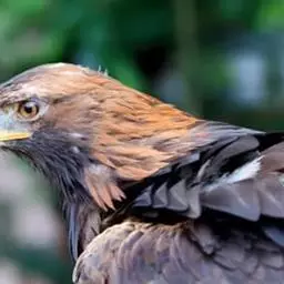 白肩雕:又名御雕,是大型猛禽。体长73-84厘米。体羽黑褐色,头和颈较淡,肩部有明显的白斑,在黑褐…