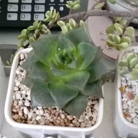 大和锦是景天科拟石莲花属的多肉植物。肉质叶排成紧密的莲座状,广卵形至散三角卵形,背面突起呈龙骨状,…