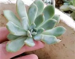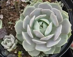 蓝石莲是景天科、拟石莲花属的多肉植物。茎部粗壮,成熟植株茎部木质化。叶片莲座型密集排列,株径不会很大,…