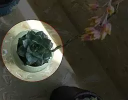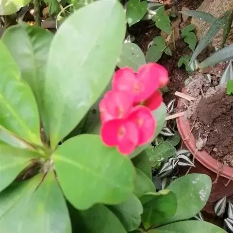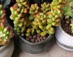 叶子表面宽厚,富肉质感且带有磨纱质感,看像石头质地;开红色小花,生于植株顶部,倒伞形密生,形状像花…