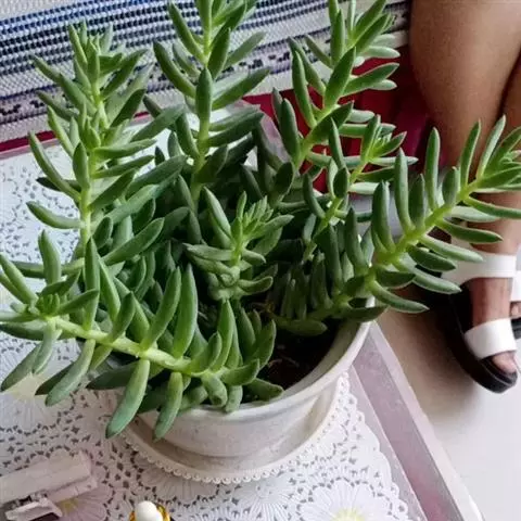 玉缀,别名翡翠景天景天科景天属常绿或半常绿多肉植物。植物匍匐下垂,翠绿色。叶小,多汁,纺锤形,、密…