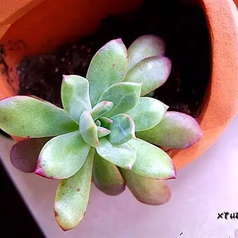 吉娃莲,景天科拟石莲花属,别名:吉娃娃,吉娃莲,植株小型,无茎的莲座叶盘非常紧凑。卵形叶较厚,带小尖,…