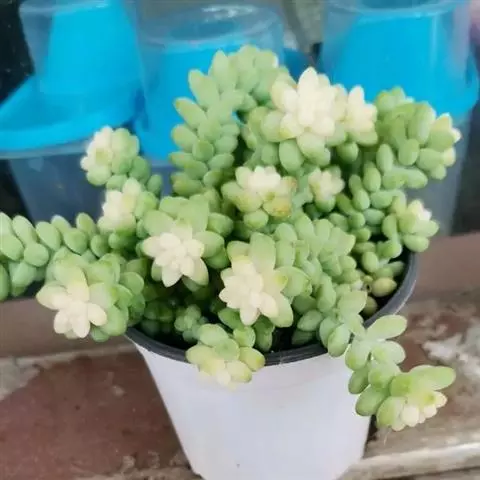 玉米石是景天科、景天属植物。多年生草本多浆植物。植株低矮丛生,多分枝。叶膨大成圆筒形、卵形或近小球形,…