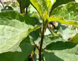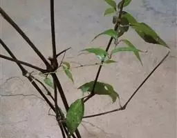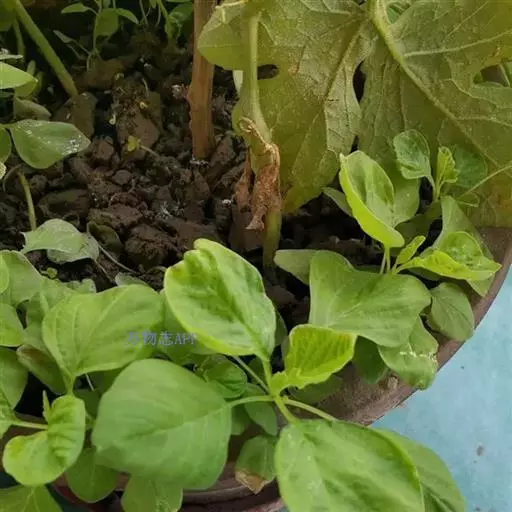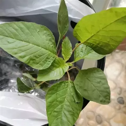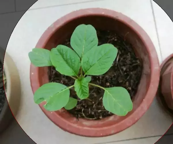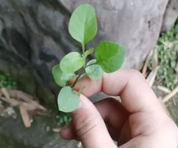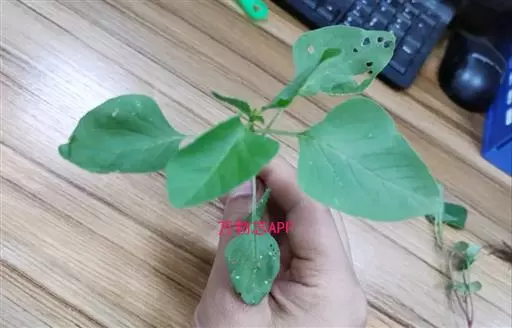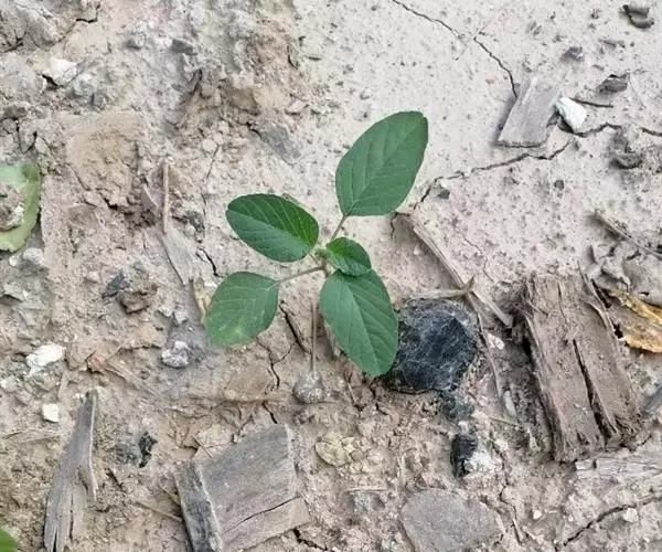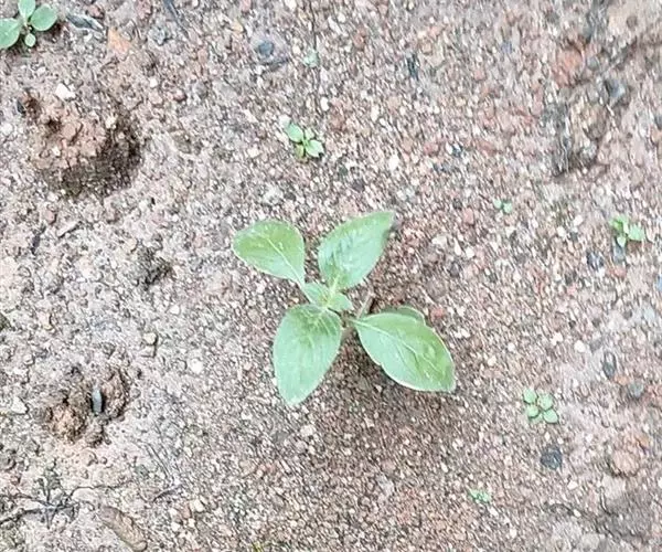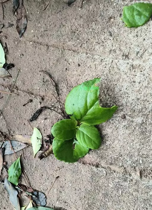 幼苗 子叶1对,长椭圆形,先端钝圆,基部连合。下胚轴发达,上胚轴短。初生叶阔卵形,先端平截,具凹陷,叶基阔楔形,有长柄。后生叶除叶缘略呈波状外,与初生叶相似。