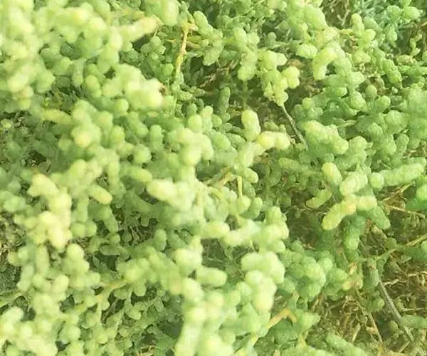 成株 肉质肥厚,有光泽无毛,绿色带紫色。株高10~30厘米,茎圆柱形,倾斜或匍匐生长,由茎部分枝。单叶,对生,有时互生,矩圆形或倒卵形,全缘,顶端内凹。花3~8朵,簇生于小枝顶端,黄色,具凹头,下部结合; 雄蕊8~12枚; 花柱4~6枚,细长,伸出雄蕊之上,柱头4~5裂。