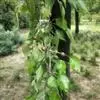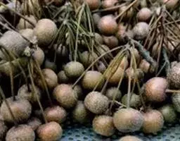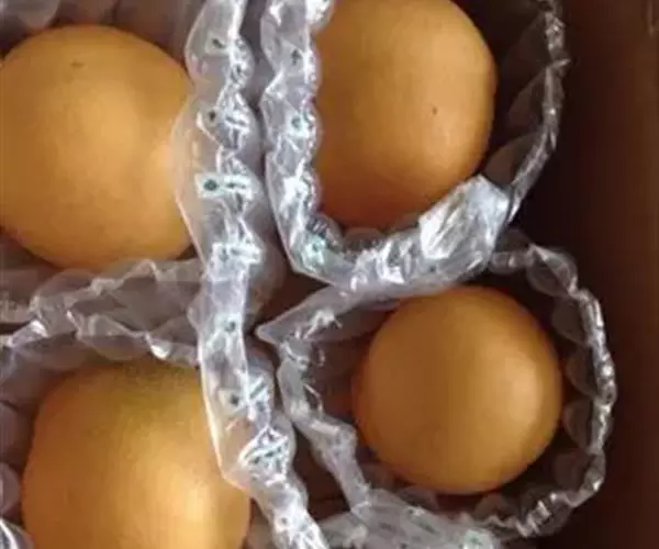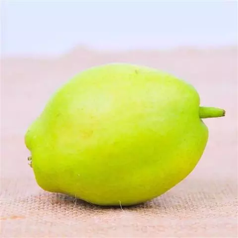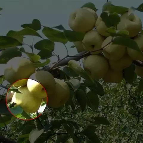 果实扁圆形,有2-3条缝合线,含糖量高达16%,多汁,口感极佳,成熟颜色为红褐色,套袋果金黄色,半透明状,成熟期为8月份。