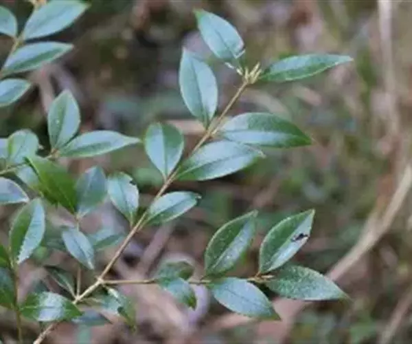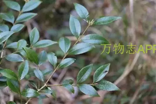 常绿灌木或小乔木,叶对生,,厚革质,深绿色有光泽。叶片从斜方形、卵形到狭披针形颇易变,通常椭圆状披针形或披针形, 长2-5厘米,宽0.9-2.5 厘米,先端渐尖,锐尖的或稍在顶部钝的;两面的中脉突起,正面的可见的侧脉。蒴果约7毫米; 宿存的花柱长约3毫米 。