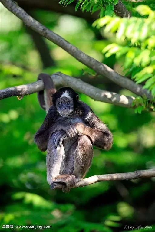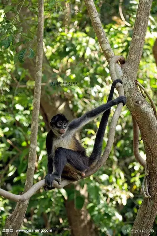 蛛猴属:共有7种。头体长约35-66厘米。头又圆又小,四肢细长,手没有拇指。…