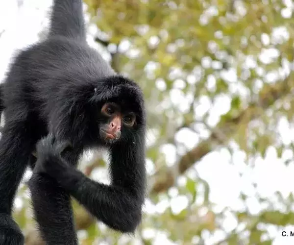 蜘蛛猴是猿猴类中最有趣的一种动物。有一根卷曲的尾巴,这根尾巴既有平衡身体的作用,又有抓曳食物、悬吊躯体的功能。其中又以蜘蛛猴的尾巴最为奇妙。蜘蛛猴动作特别敏捷,已知的蛛蜘猴有7种。蜘蛛猴瘦高个子,但有点大腹便便。头体长约35-66厘米。四肢细长,手没有拇指。毛茸茸的尾巴约有60-92厘米长,很会抓住树枝,其功能有点像手。几种蜘蛛猴的毛发颜色不一,有灰色、红色、深褐色和黑色几种。长短和浓密的程度也不一样。