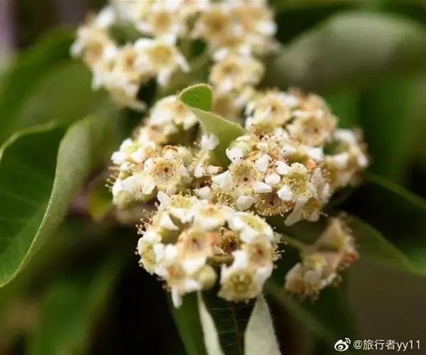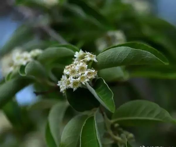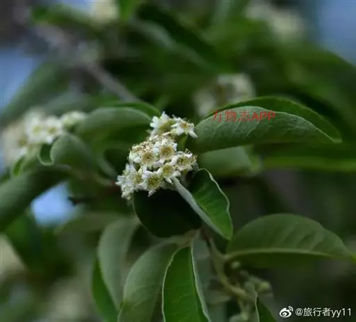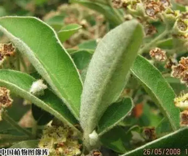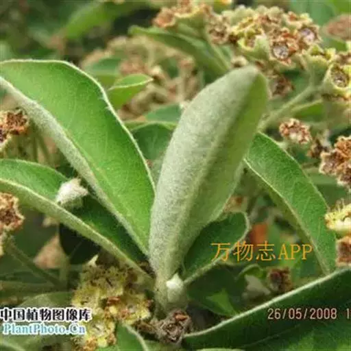 常绿灌木至小乔木,高2-4米;枝条丛生,小枝幼时密被黄白色绒毛,老时灰褐色,无毛;树皮光滑,暗灰色,密被皮孔。叶片长圆披针形,有时倒卵形、倒披针形至椭圆形,长3-6厘米,宽1.5-2.5厘米,先端急尖或圆钝并有凸尖,基部楔形至圆形,全缘,上面无毛或仅在中脉上有少数柔毛,光亮,下面幼时密被白色绒毛,逐渐稀薄,侧脉7-12对,下面明显;叶柄粗壮,长4-6毫米,密被黄白色绒毛;托叶丝状,不久脱落。花多数,密集成顶生复伞房花序,总花梗和花梗被黄白色绒毛;苞片披针形,膜质,早落;花梗长2-3毫米;花直径8-9毫米;萼筒钟状,外面密被绒毛,内面被柔毛;萼片三角形,先端圆钝,边有腺齿,外面密被绒毛,内面无毛或几无毛;花瓣白色,平展,近圆形或宽卵形,长3-4毫米,先端圆钝或微凹,基部有极短爪;雄蕊20,短于花瓣,花丝光滑无毛;子房外被柔毛,花柱侧生,无毛,柱头头状。果期心皮干燥,革质,长圆柱状,顶端稍具短柔毛,长5-7毫米,褐色至黑褐色,突出于肉质红色杯状萼筒之中。花期4-5月,果期8-11月。