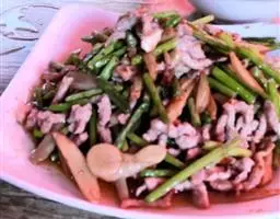 这里是以酸笋来炒螺。将螺与酸笋一起炒了,再放入自制的辣椒油,最惹味。