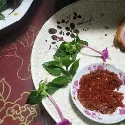 紫苏叶是一种紫色植物的叶子,有特殊的香味。我们那里以前在菜地里都种,作香料。我认为它有很好的去腥效果。炒田螺不能少的香料。