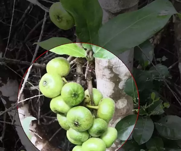 该变种榕果扁球形,径25-30毫米,成熟时黄色,干后常具纵棱,口部苞片莲座状,侧生苞片宽三角形,总梗长5-10毫米。