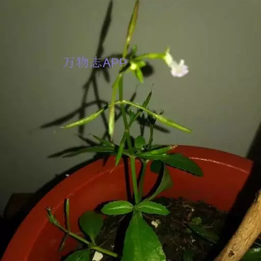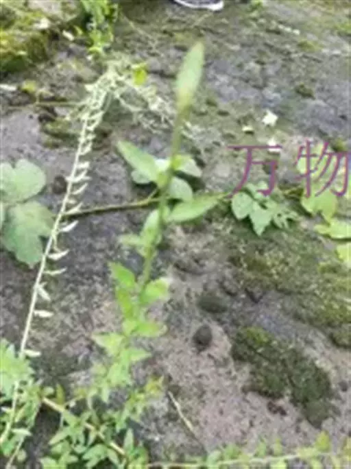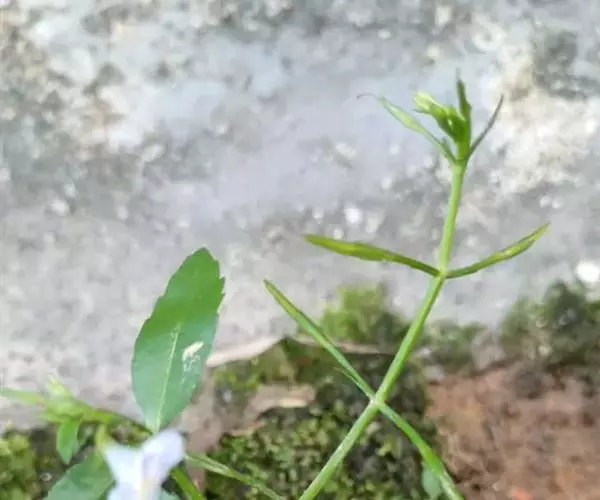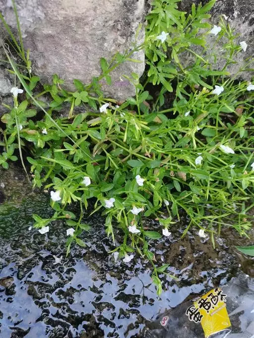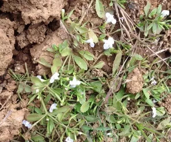 一年生草本,根须状成丛;茎幼时亚直立,长大后多分枝,枝基部匍匐,下部节上生根,弯曲上升,高可达30厘米,茎枝有沟纹,无毛。叶片矩圆形、矩圆状披针形、矩圆状倒披针形或几为条状披针形,长0.3-4厘米,宽0.6-1.2厘米,顶端急尖或圆钝,基部下延有宽短叶柄,而近于抱茎,边缘有少数不明显的锯齿至有明显的锐锯齿或近于全缘,两面无毛。花多在茎枝之顶成总状着生,花序长者可达15厘米,含花2-20朵;苞片钻形;花梗有条纹,顶端变粗,长者可达1.5厘米,花期上升或斜展,在果期平展或反折;萼仅基部联合,齿5,条状披针形,沿中肋和边缘略有短硬毛;花冠紫色、紫白色或白色,长可达1厘米,管长可达7毫米,上唇2裂,下唇3裂,上、下唇近等长;后方一对雄蕊有性,前方一对退化,药消失,花丝端钩曲有腺;花柱细,柱头扁平,片状。蒴果圆柱形,顶端渐尖,长约为宿萼的2倍或较多;种子为不规则三棱状卵形,褐色,有网状孔纹。花、果期春季至秋季。