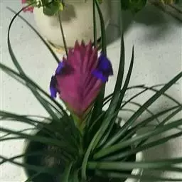 紫花凤梨,是凤梨科铁兰属的多年生草本植物。株高不及30厘米;叶片拱状线形,叶丛族生于短缩茎上,…