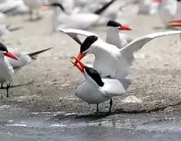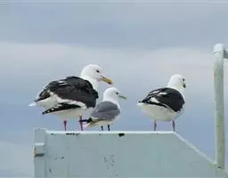 灰背鸥大型水鸟,体长62~69厘米。嘴直,黄色,下嘴先端有红色斑。脚粉红色,头、颈和下体白色,背、…