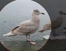 灰翅鸥,夏羽头、颈、腰、尾白色;肩、背和翅上覆羽鸽灰色。冬羽和夏羽相似,但头和颈具淡褐色纵纹,有时…