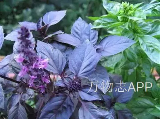 斑叶罗勒:株高及其他特性同,不同点在于茎深紫色至棕色,花紫色,叶片具有紫色斑点。