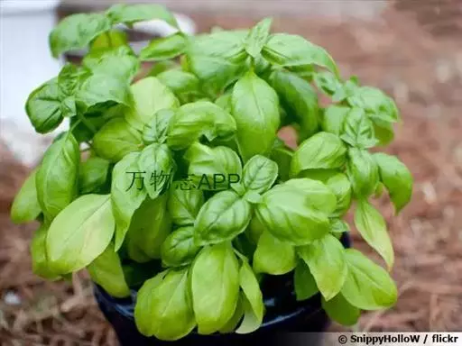 柠檬罗勒(O.b.var.citriodorum),一年生,花白色,绿叶,叶片具有柠檬香味,一般做酱汁、鸡肉时使用。