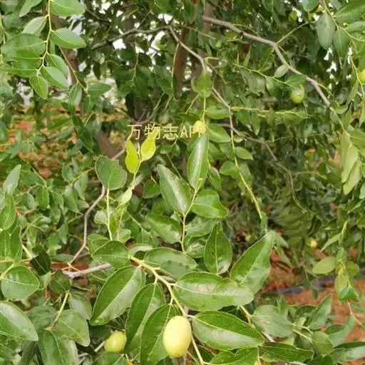 枣(学名:Ziziphus jujuba Mill.),别称枣子,大枣、刺枣,贯枣。鼠李科枣属植物,落叶小乔木,稀灌木,高达10余米,树皮褐色或灰褐色,叶柄长1-6毫米,或在长枝上的可达1厘米,无毛或有疏微毛,托叶刺纤细,后期常脱落。花黄绿色,两性,无毛,具短总花梗,单生或密集成腋生聚伞花序。核果矩圆形或是长卵圆形,长2-3.5厘米,直径1.5-2厘米,成熟后由红色变红紫色,中果皮肉质、厚、味甜。种子扁椭圆形,长约1厘米,宽8毫米。