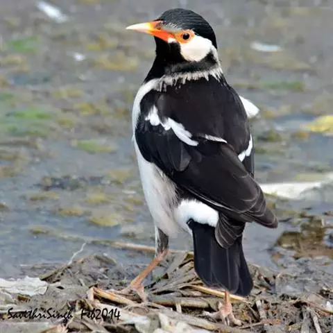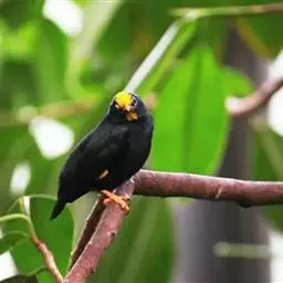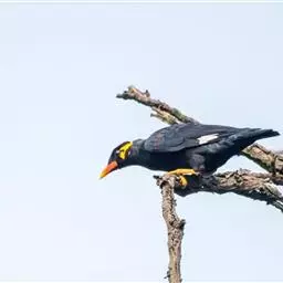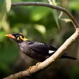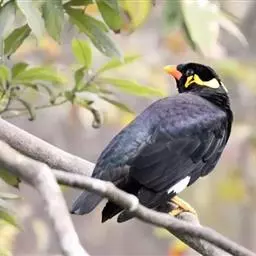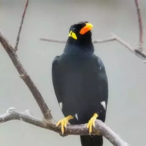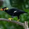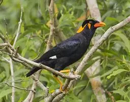 金冠树八哥为椋鸟科树八哥属的鸟类。体长约23厘米,闪辉黑色。特征为具翼斑及颏黄色,脸颊裸露皮肤粉黄色。…