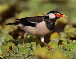 斑椋鸟:是中等体型的黑白色椋鸟,体长24厘米。头顶、头侧、翼斑、腰及腹部白色,喉、胸及上体余部黑色,…