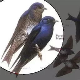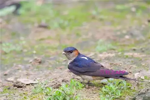线尾燕,腹部接近纯白色,背部则为深紫色,头部的羽毛是栗色的。