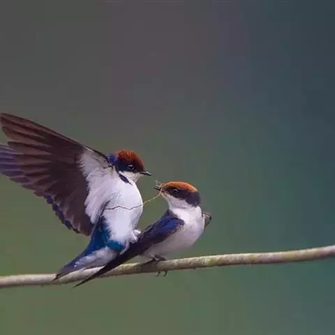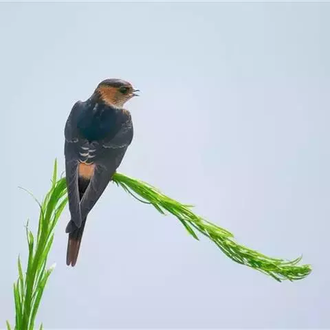 金腰燕:体长16-18厘米,体重18-21克,寿命15年。上体黑色,具有辉蓝色光泽,腰部栗色,…
