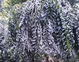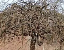 树皮暗灰色,粗糙,不规则纵裂。幼树枝条直立,且被白色毛;老树枝条先端下垂,有时木栓质发达成为瘤状。…