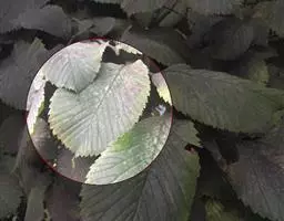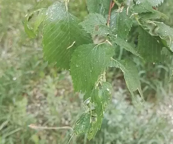 叶倒卵状宽椭圆形或椭圆形,通常长8-15厘米,中上部较宽,先端凸尖,基部明显地偏斜,一边楔形,一边半心脏形,边缘具重锯齿,齿端内曲,叶面无毛或叶脉凹陷处有疏毛,叶背有毛或近基部的主脉及侧脉上有疏毛,叶柄长6-13毫米,全被毛或仅上面有毛。