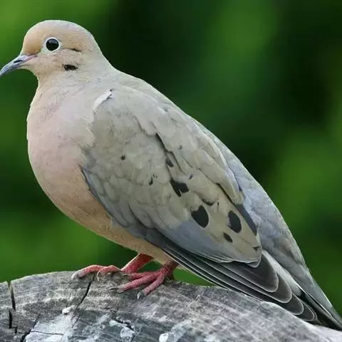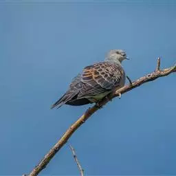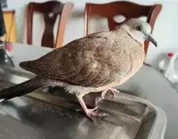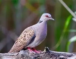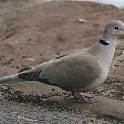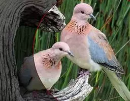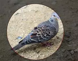 欧斑鸠体长27厘米,是一种体型略小的粉褐色斑鸠。颈侧具多黑白色细纹的斑块,翼覆羽深褐,…