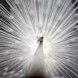 白孔雀,脊椎动物,鸟纲,雉科。其全身洁白无瑕,羽毛无杂色,…