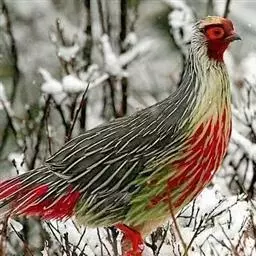 营巢:通常营巢于1100-1500米的原始阔叶林中,偶尔也在混交林中营巢。一般置巢于隐蔽而阴暗的倒木下或岩石间。巢多利用地上凹坑或自己在地面挖一浅坑,内垫以干树叶、草茎、草根和羽毛即成,结构较为简陋,呈浅盆状,大小为直径26(24-28)厘米,深7.5(5-10)厘米。