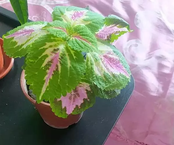 该变种与五彩苏不同在于花萼上唇中裂片比下唇短。